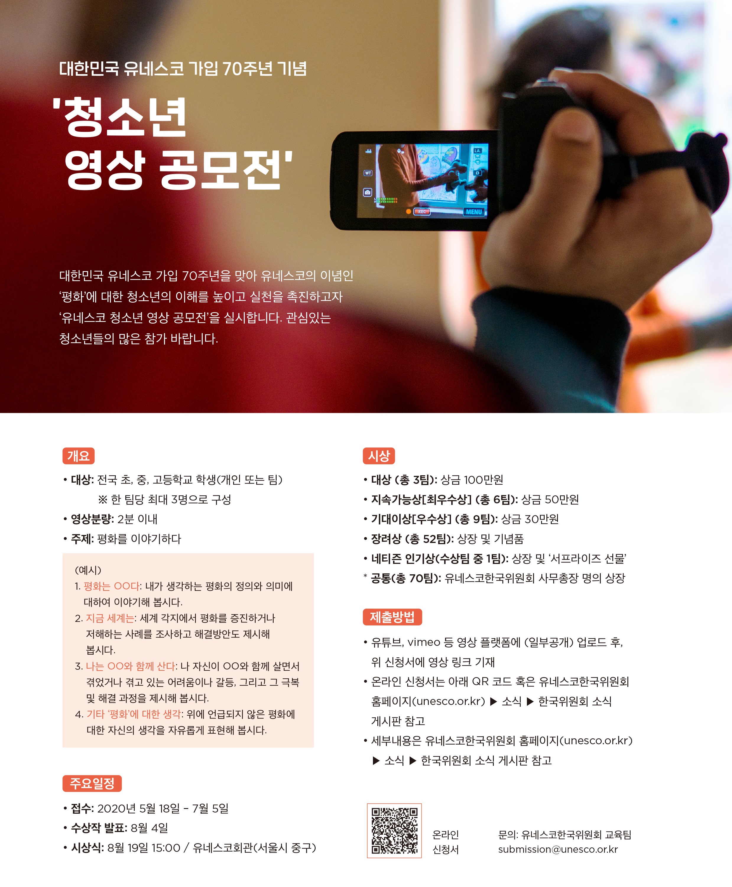 '유네스코 청소년 영상 공모전'을 실시합니다.