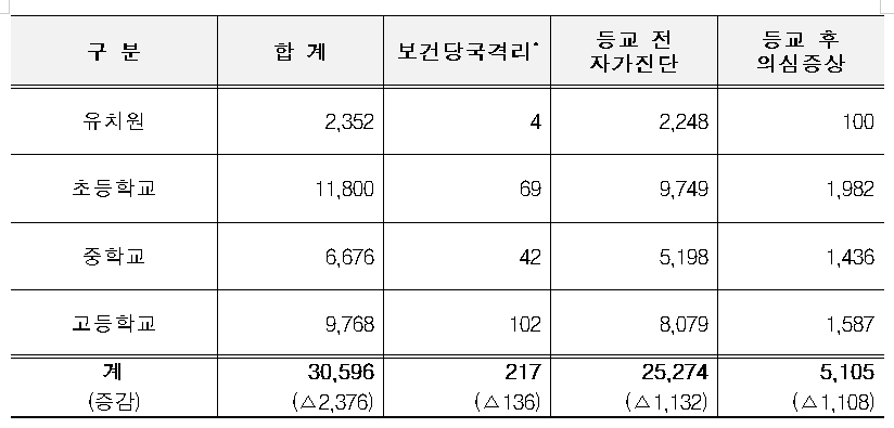 학생 미등교 사유별 현황 <단위 : 명>