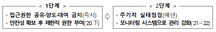 아울러, 정보시스템 접근권한 관리를 강화하고 보안관리를 철저히 한다. 사전 등록된 PC에서만 정보시스템에 접속할 수 있도록 하고, 미등록 PC의 정보시스템 접속 등 이상 징후 발견 시 경고메시지를 전송하는 등 정보시스템 관리·운영체계를 개선해 나갈 계획이다.