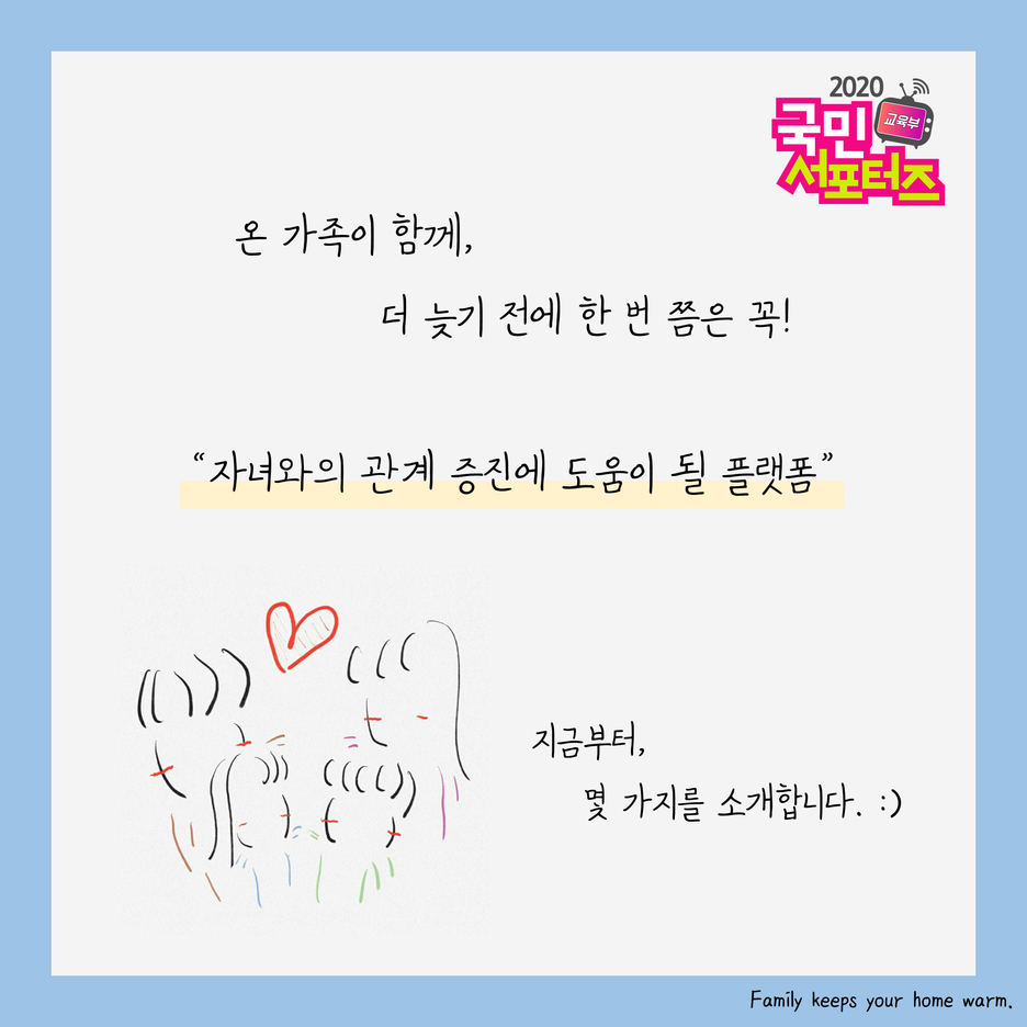 하지만“대화를 하자!”머릿속에서 아무리 외쳐도 막상 말하면 잔소리부터 나오지 않으시나요?당장 시작이 어려우니 자녀를 이해하고 올바른 교육을 하기 위해 도움이 되는 플랫폼을 소개해드리도록 하겠습니다.