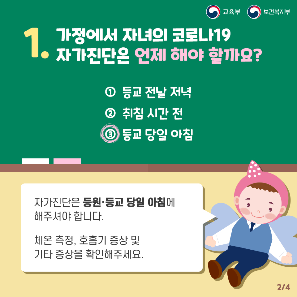 1. 가정에서 자녀의 코로나19 자가진단은 언제 해야 할까요?