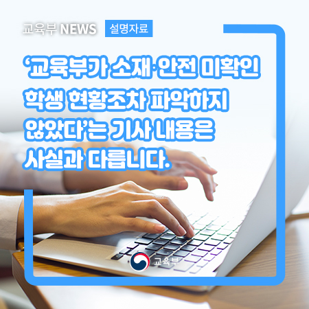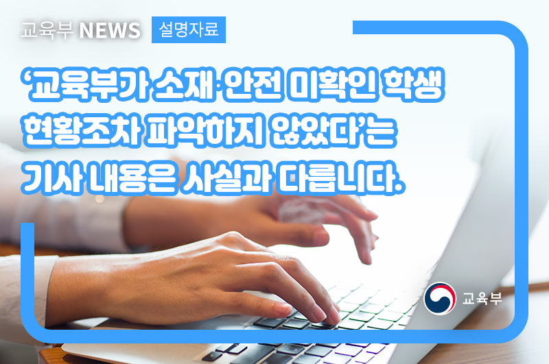 ‘교육부가 소재‧안전 미확인 학생 현황조차 파악하지 않았다’는 기사 내용은 사실과 다릅니다. 본문
