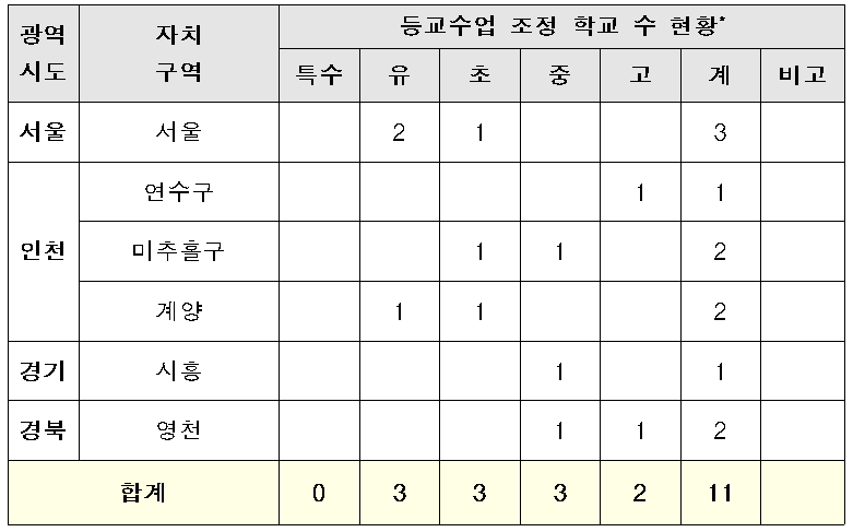 - 6.15.(월) 10:00 기준, 4개 시·도 11교 등교수업일 조정