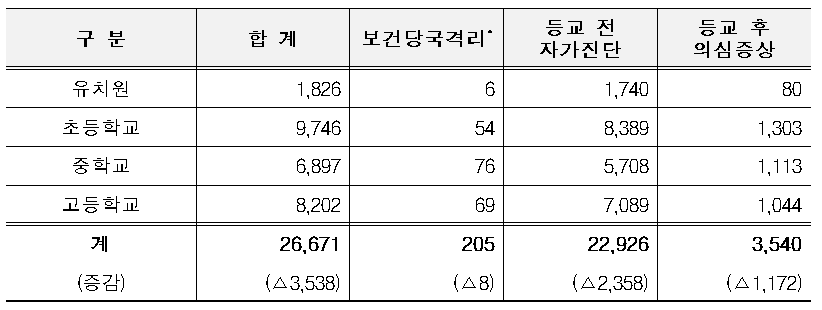 학생 미등교 사유별 현황 (6.14. 16시 기준) <단위 : 명>