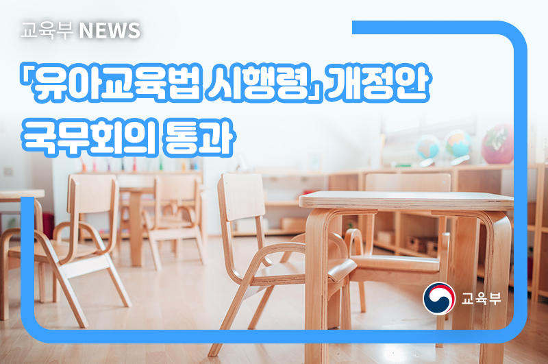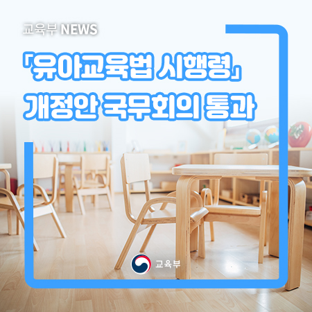 교육부(부총리 겸 교육부장관 유은혜)는 6월 16일(화) 국무회의에서 「유아교육법 시행령」 개정안이 심의·의결되었다고 밝혔다.