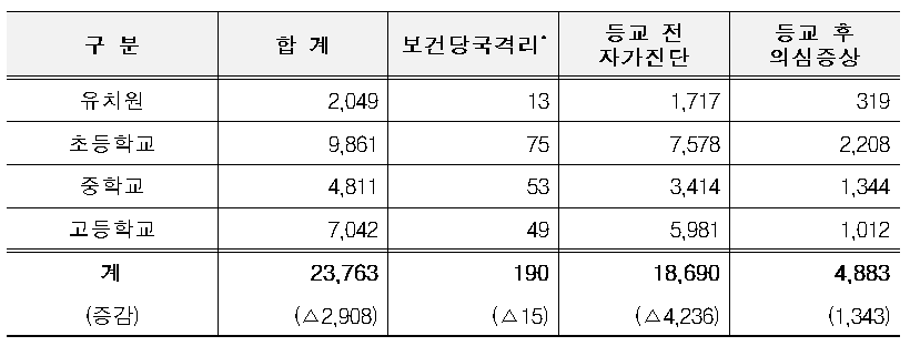 학생 미등교 사유별 현황(6.15. 16시 기준) <단위 : 명>