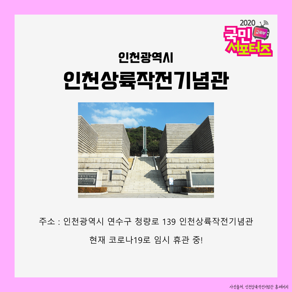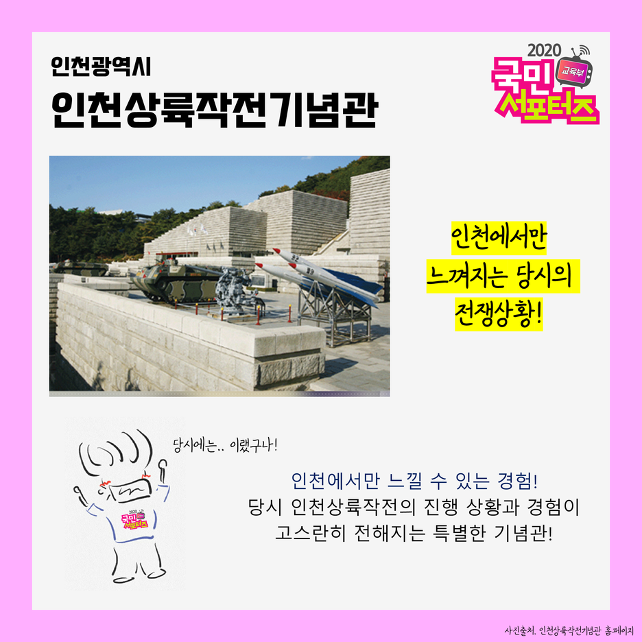 세 번째 장소는 인천상륙작전기념관입니다.인천의 가장 큰 역사적 사건 중 하나인 인천상륙작전에 대해서 어느 곳보다 생생하고 세세하게 살펴볼 수 있는 기념관입니다.