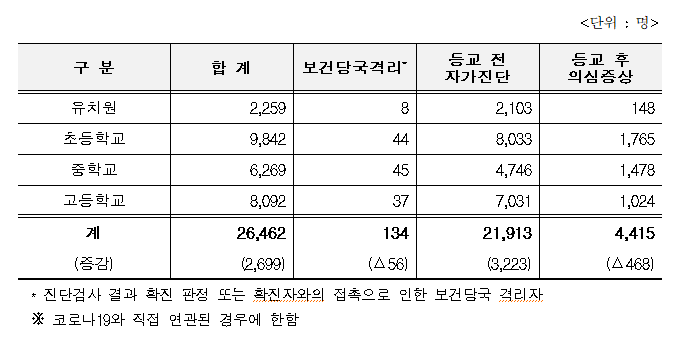- 6.16.(화) 24:00 기준, 등교 이후 확진자 전일대비 초등학생 1명,
