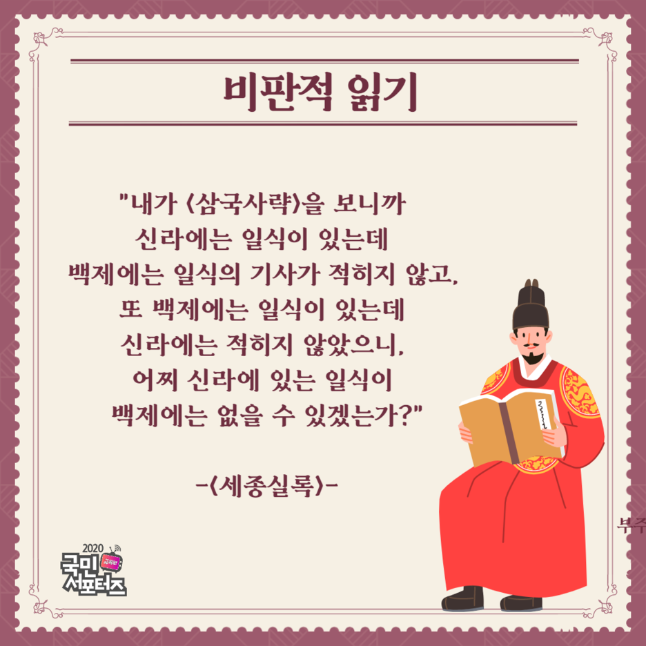 이것은 세종이 <삼국사략>을 읽은 후의 감상입니다. 사관이 일부러 기록을 생략하거나 자세히 다루는 것을 눈치 채고 그것에 대해 비판적으로 자신의 감상을 표현한 것입니다. 책 속에서 눈에 띄는 거짓말은 찾아내기 쉽습니다. 하지만 위의 경우처럼 의도적으로 기록을 생략하거나 더 강조하는 것은 알아내기가 쉽지 않습니다. 따라서 책을 더 주의 깊게 읽을 필요가 있습니다.