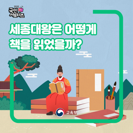 그러나 그 쉽지 않은 독서를 평생 동안 게을리 하지 않은 사람이 있습니다. 눈치 채셨나요? 네, 맞습니다. 바로 '세종대왕'입니다. 예로부터 우리 선조들은 독서를 하는 것을 아주 의미 있는 행위로 여겼습니다. 사대부들은 주로 독서를 하며 지식을 쌓고 자신의 뜻을 펼치기 위해 노력했습니다. 그렇다면 무려 한글을 만든 세종대왕은 어떤 독서를 했을까요? 지금부터 알아보도록 하겠습니다.