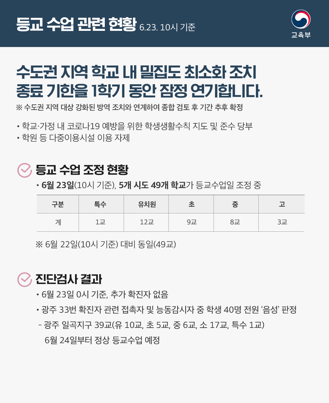 [등교수업 관련 현황 자료(6.23)] 본문