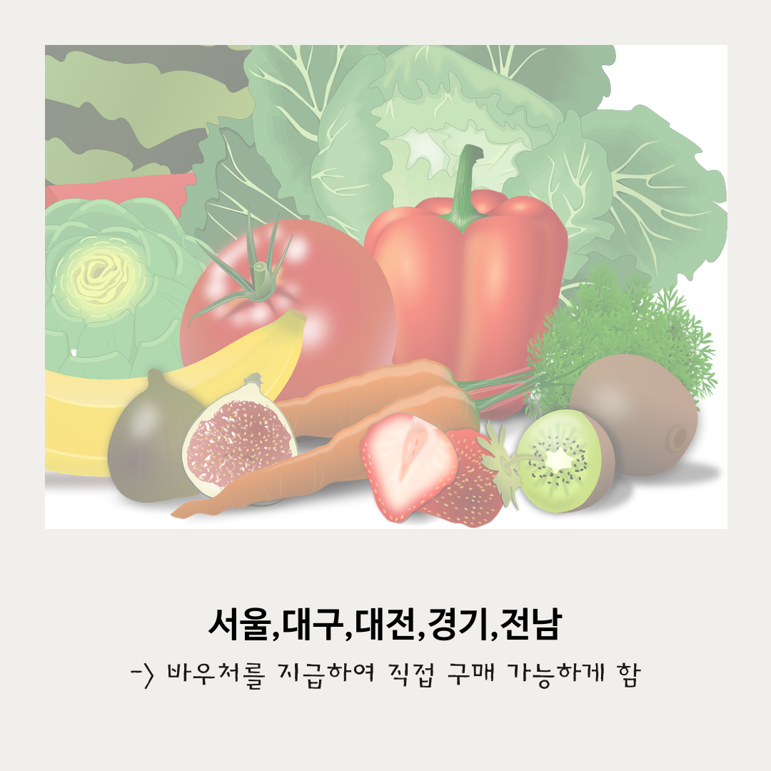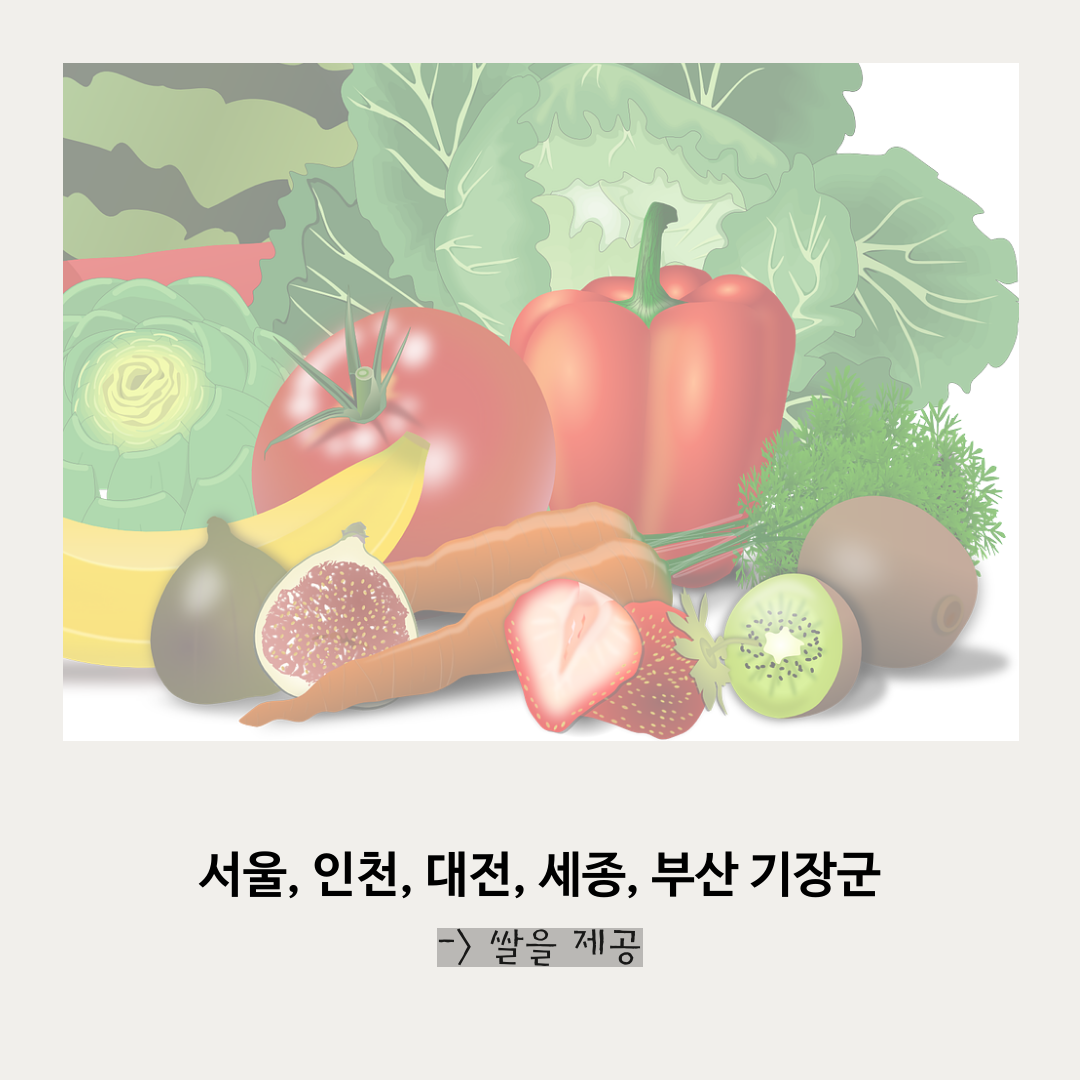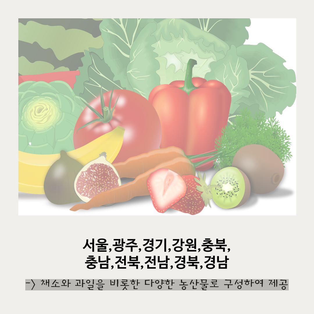 농산물 꾸러미 사업을 통해 약 499만 명의 학생에게 학교에서 사용되는 학교 급식용 농산물 등 식자재가 공급될 예정입니다. 사업에 참여하는 지역마다 제공하는 농산물은 조금씩 다릅니다. 서울을 비롯한 광주, 경기, 강원, 충북, 충남, 전북, 전남, 경북, 경남지역은 채소와 과일 등 다양한 농산물로 구성하여 제공하며, 서울과 인천, 대전, 세종, 부산 기장군은 쌀을 제공합니다. 바우처를 지급하여 직접 구매할 수 있도록 하는 지역도 있다고 합니다.
