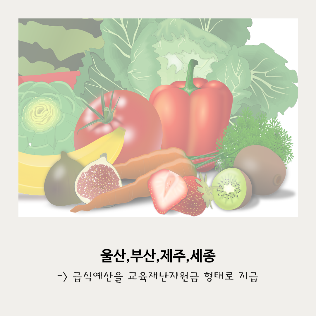 서울과 대구, 대전, 경기, 전남이 그 대상입니다. 더불어, 울산, 부산, 제주, 세종은 급식예산을 교육재난지원금 형태로 지급하며 학생 가정의 경제적 부담을 줄여주고자 하는 노력을 한다고 합니다. 현재 이미 대상자 499만명중 147만명에게는 공급이 완료된 상황이며 앞으로 지속적으로 계획을 이행해나갈 예정입니다.