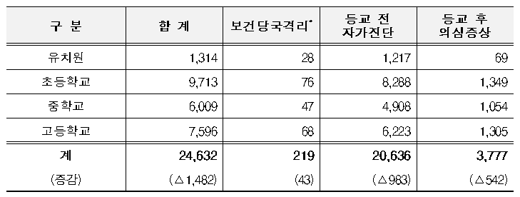학생 미등교 사유별 현황(6.24. 16시 기준) <단위 : 명>