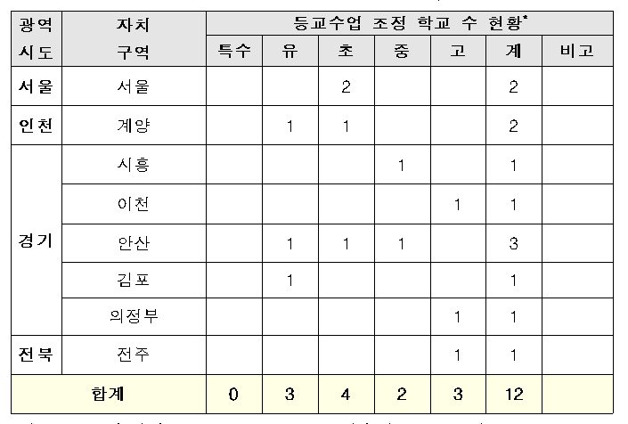 - 6.25.(목) 10:00 기준, 4개 시·도 12교 등교수업일 조정