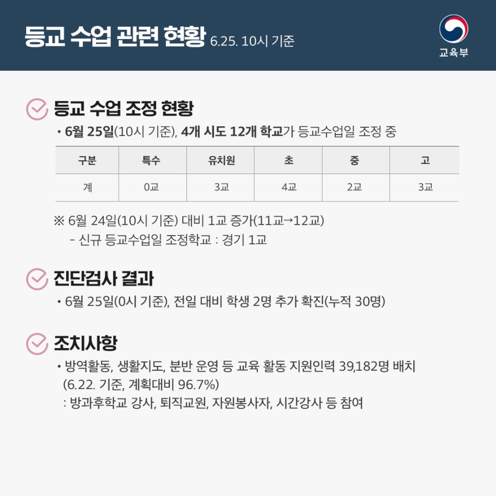 - 진단검사 결과 전일 대비 학생 2명 추가 확진(6.25. 0시 기준)