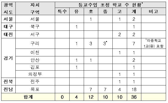 - 6.29.(월) 10:00 기준, 6개 시·도 36교 등교수업일 조정
