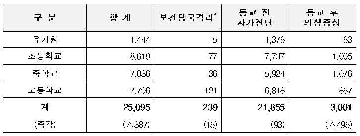 학생 미등교 사유별 현황(6.28. 16시 기준) <단위 : 명>