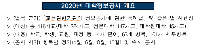 대학별 세부적인 공시자료는 6월 30일(화) 06시에 대학알리미 누리집(www.academyinfo.go.kr)에 공시할 예정이다.