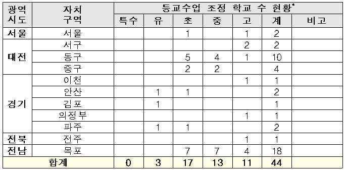 - 6.30.(화) 10:00 기준, 5개 시·도 44교 등교수업일 조정
