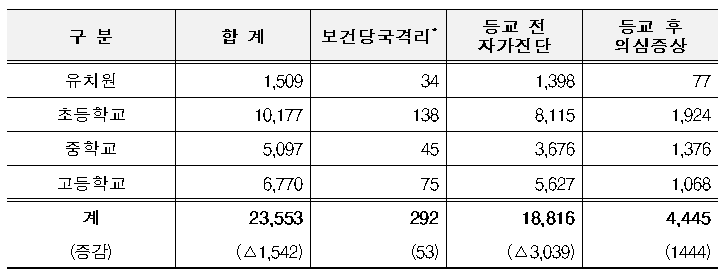 ※ 학생 483명, 교직원 68명, 방과후 밀접접촉자 40명