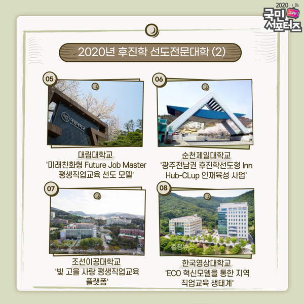 지금까지 2020년 추가로 선정된 후진학 선도전문대학 10개교를 함께 살펴보았습니다.
