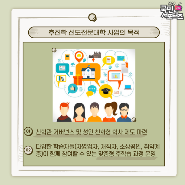 평생직업교육 확대를 위한 2020년 후진학 선도전문대학! 본문