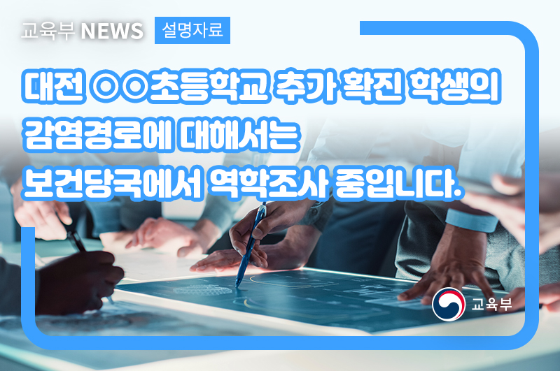 대전 ○○초등학교 추가 확진 학생의 감염경로에 대해서는 보건당국에서 역학조사 중입니다. 본문