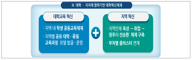 올해부터 추진하는 지자체-대학 협력기반 지역혁신사업을 통해 ‘지역혁신 플랫폼’을 구축하여, 지역 내 대학 간 교육과정 공동운영 등을 활성화할 수 있도록 하고, 각종 규제를 시범적으로 완화하는 ‘고등교육 혁신 샌드박스’도입을 추진한다.