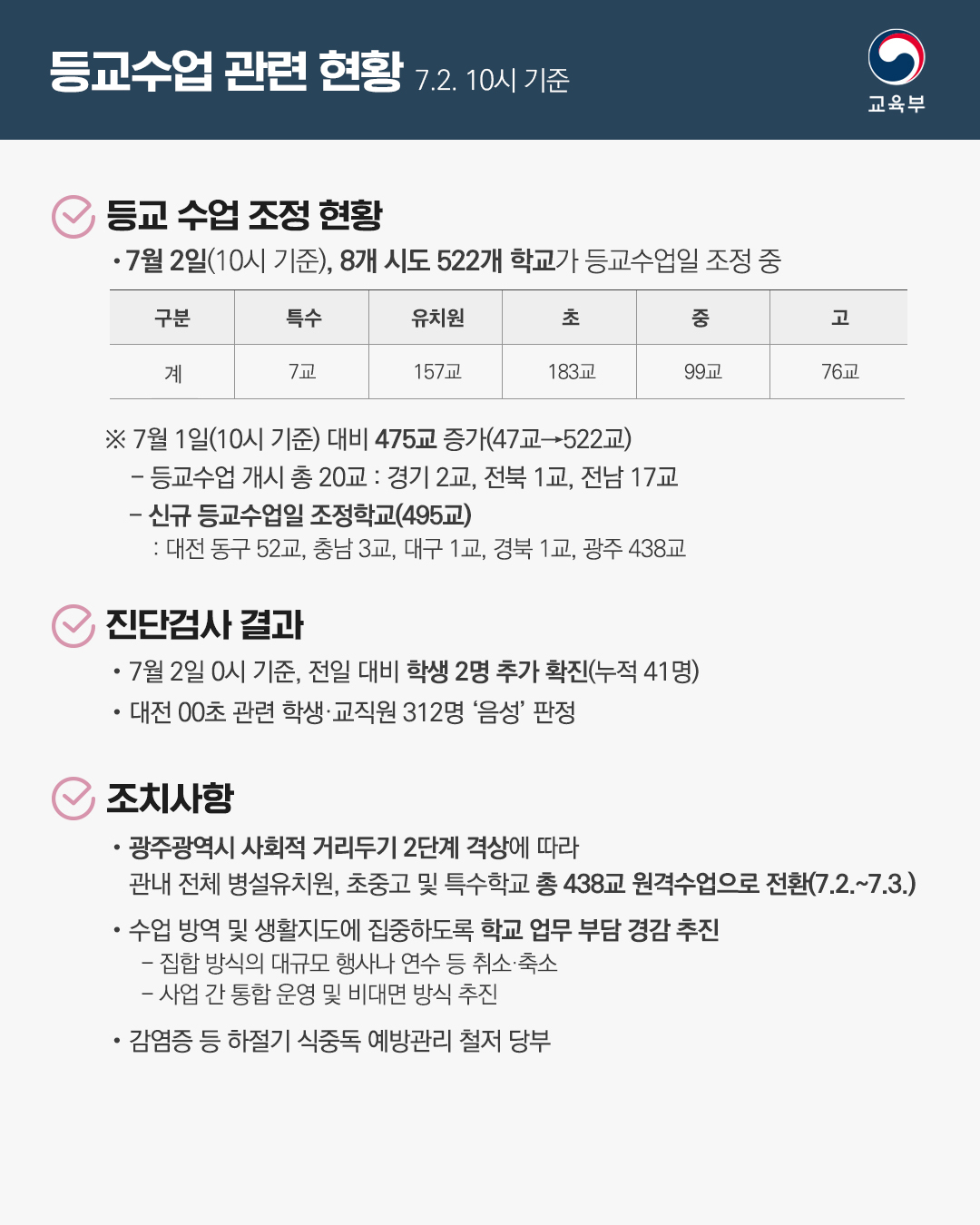 - 전일 대비 학생 2명 추가 확진