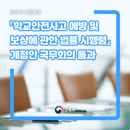 「학교안전사고 예방 및 보상에 관한 법률 시행령」개정안 국무회의 통과 본문