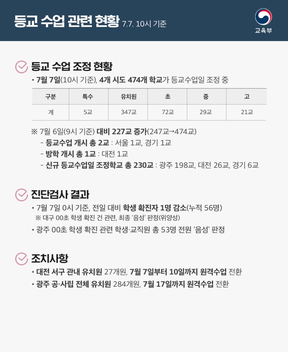 - 광주 공·사립 전체 유치원 284개원, 7월 17일까지 원격수업 전환