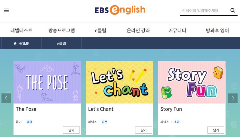 마지막으로 e클립은 EBS 영어 프로그램 내용 중 핵심 내용을 뽑은 짧은 영상 혹은 학교 교육 현장에서 많이 활용되고 있는 콘텐츠를 약 3분 길이로 만들어 학생에게 제공하고 있습니다. e클립 역시 어휘, 문법, 듣기, 말하기, 쓰기, 읽기로 학습 영역이 나뉘어 있으며 초급에서 고급까지 수준별로 선택이 가능합니다. 짜투리 시간에 핵심만 콕콕 찝은 영어 학습을 원하는 학생이라면 e클립을 이용해보시기를 추천합니다.