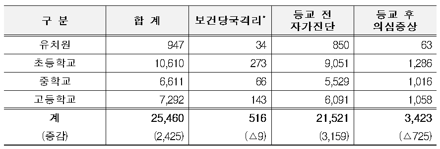 ◈ 학생 미등교 사유별 현황 및 진단검사 현황