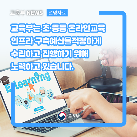 교육부는 초·중등 온라인교육 인프라 구축예산을적정하게 수립하고 집행하기 위해 노력하고 있습니다. 본문