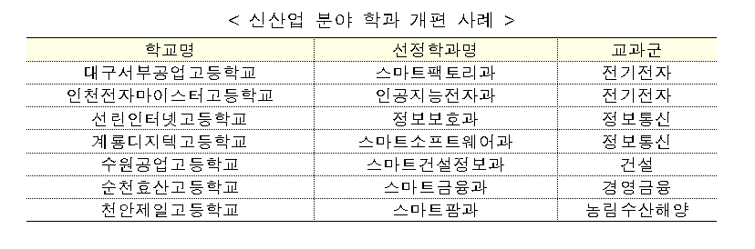 이에 따라 학생·학부모의 교육수요도 다변화·세분화되고 있으며, 교육부는 이에 대응하기 위해 직업계고등학교의 학과 개편을 적극적으로 지원하고 있다.