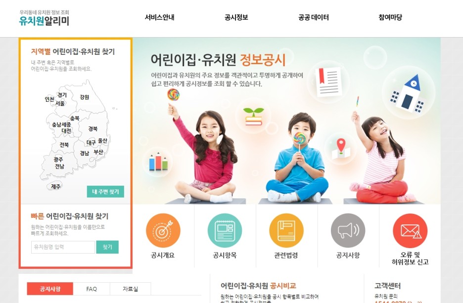 오늘은 어린이집과 유치원 정보공시를 생생하게 제공해 주고 있는 유치원 알리미에 대해 알아보겠습니다.