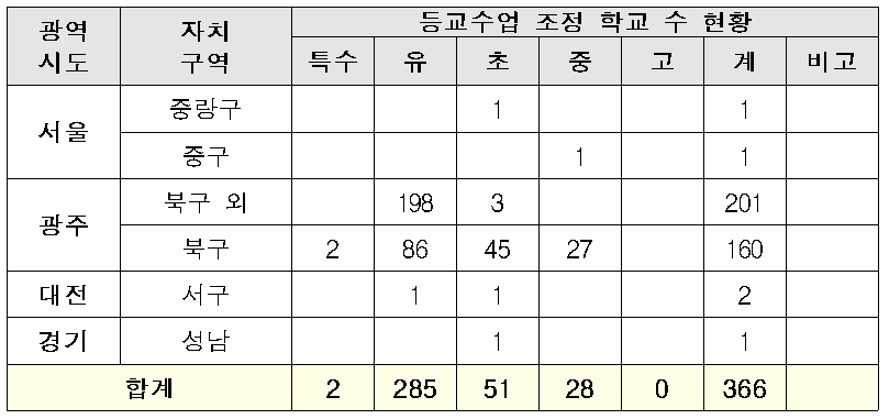 ※ 등교수업일 조정학교 : 서울 1개교, 광주 2개교