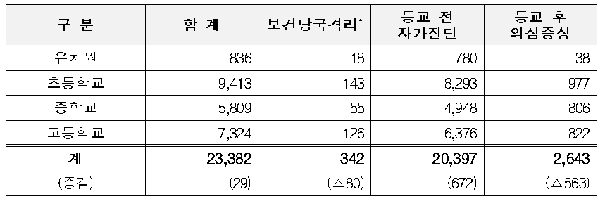 학생 미등교 사유별 현황(7.10. 16시 기준) <단위 : 명>