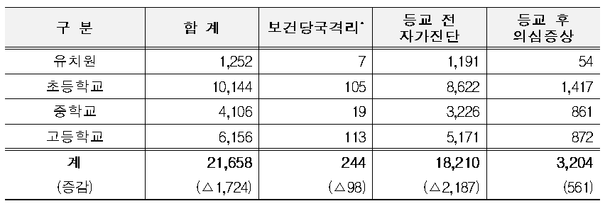 학생 미등교 사유별 현황(7.13. 16시 기준) <단위 : 명>