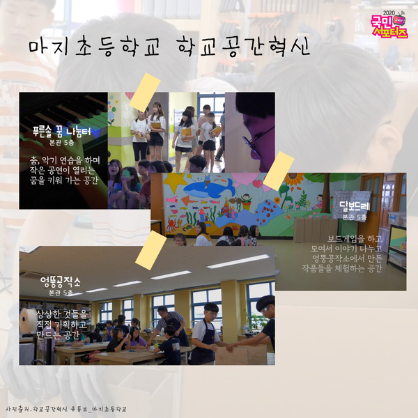 공간의 특징을 살려 마지초등학교에서는 다양한 교과목과 연계한 수업들이 생겨났다고 하는데요. 주변에서 일어날 수 있는 문제 상황을 발견하고 문제 해결아이디어를 직접 제시 및 실행하여 자신만의 학교 공간에서 세상을 배워나갈 수 있었습니다!