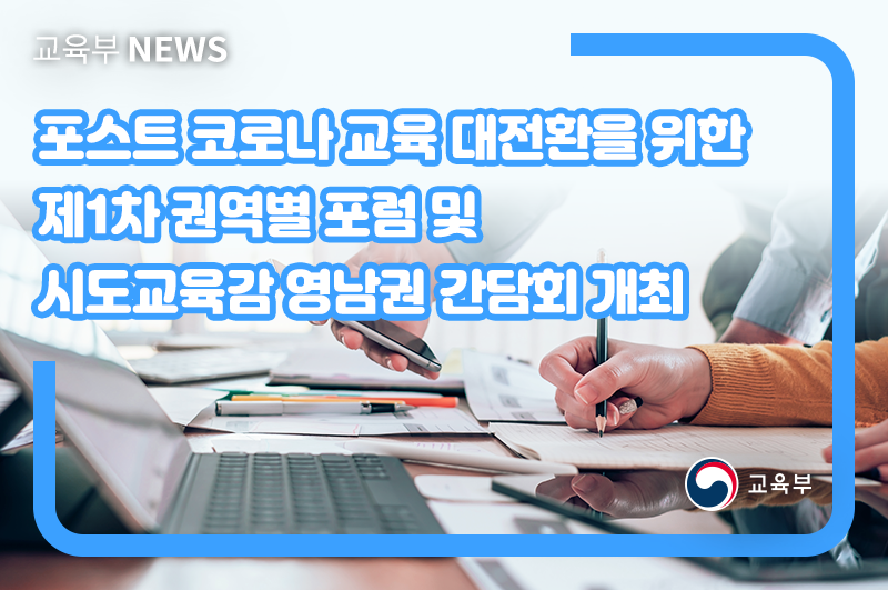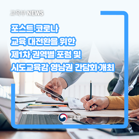 교육부(부총리 겸 교육부장관 유은혜)는 7월 15일(수), 포스트 코로나 교육 대전환을 위한 「제1차 권역별 포럼 및 시도교육감 영남권 간담회」를 개최한다.