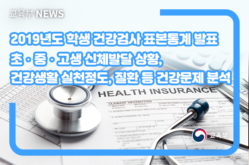 교육부(부총리 겸 교육부장관 유은혜)는 7월 23일(목) 2019년도 학생 건강검사 표본통계 분석결과를 발표하였다.