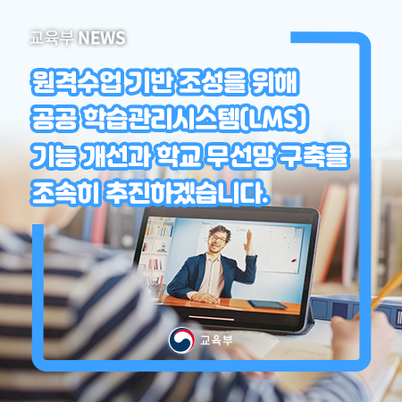원격수업 기반 조성을 위해 공공 학습관리시스템(LMS) 기능 개선과 학교 무선망 구축을 조속히 추진하겠습니다.