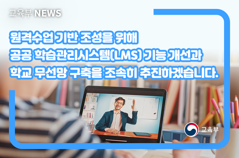 원격수업 기반 조성을 위해 공공 학습관리시스템(LMS) 기능 개선과 학교 무선망 구축을 조속히 추진하겠습니다.