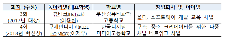 <대한민국 청소년 창업경진대회 수상학생의 실제 창업사례>