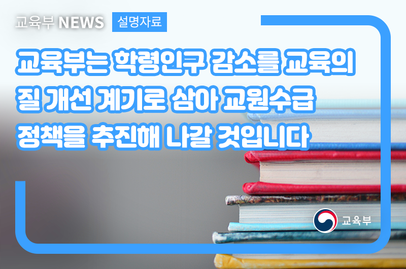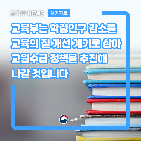 교육부는 학령인구 감소를 교육의 질 개선 계기로 삼아 교원수급 정책을 추진해 나갈 것입니다. 본문