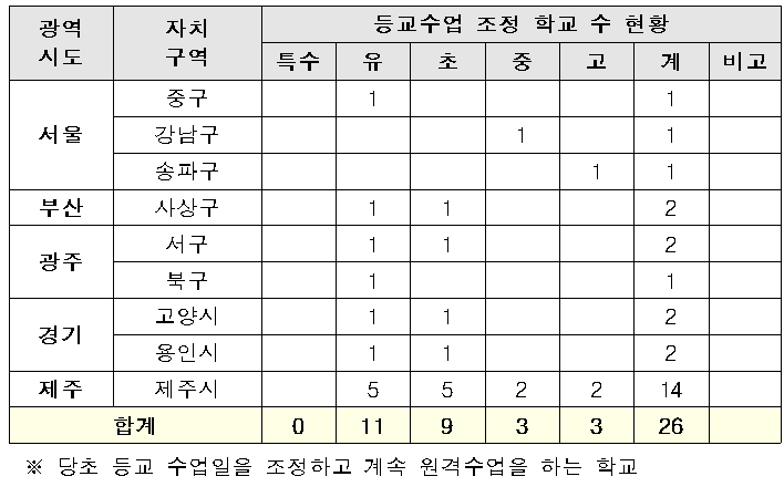 ※ 등교수업일 조정학교 : 서울 1교, 광주 1교, 경기 2교