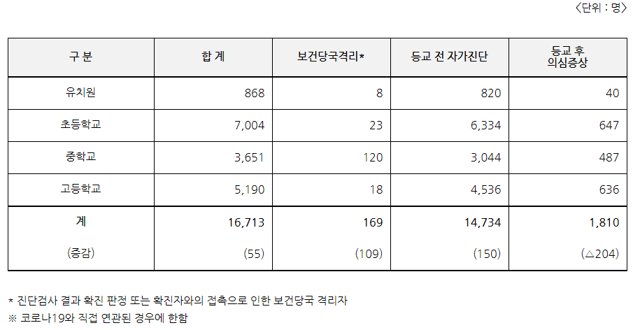 ※ 등교수업 개시 21교 : 서울 2, 부산 2, 광주1, 경기 고양 2, 제주 한림 14