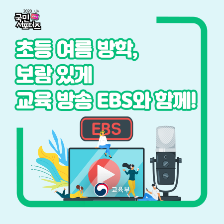 EBS에서 초등학생 여러분의 방학을 위하여 다양한 무료 교육 콘텐츠들을 제공하고 있다는 사실, 이제는 알았죠? 여름 방학 중에도 우리 학생들의 잠재성, 무한한 창의력‧탐구력‧사고력을 확장할 수 있는 자기 주도적이고 계획적인 생활을 교육부가 응원합니다!